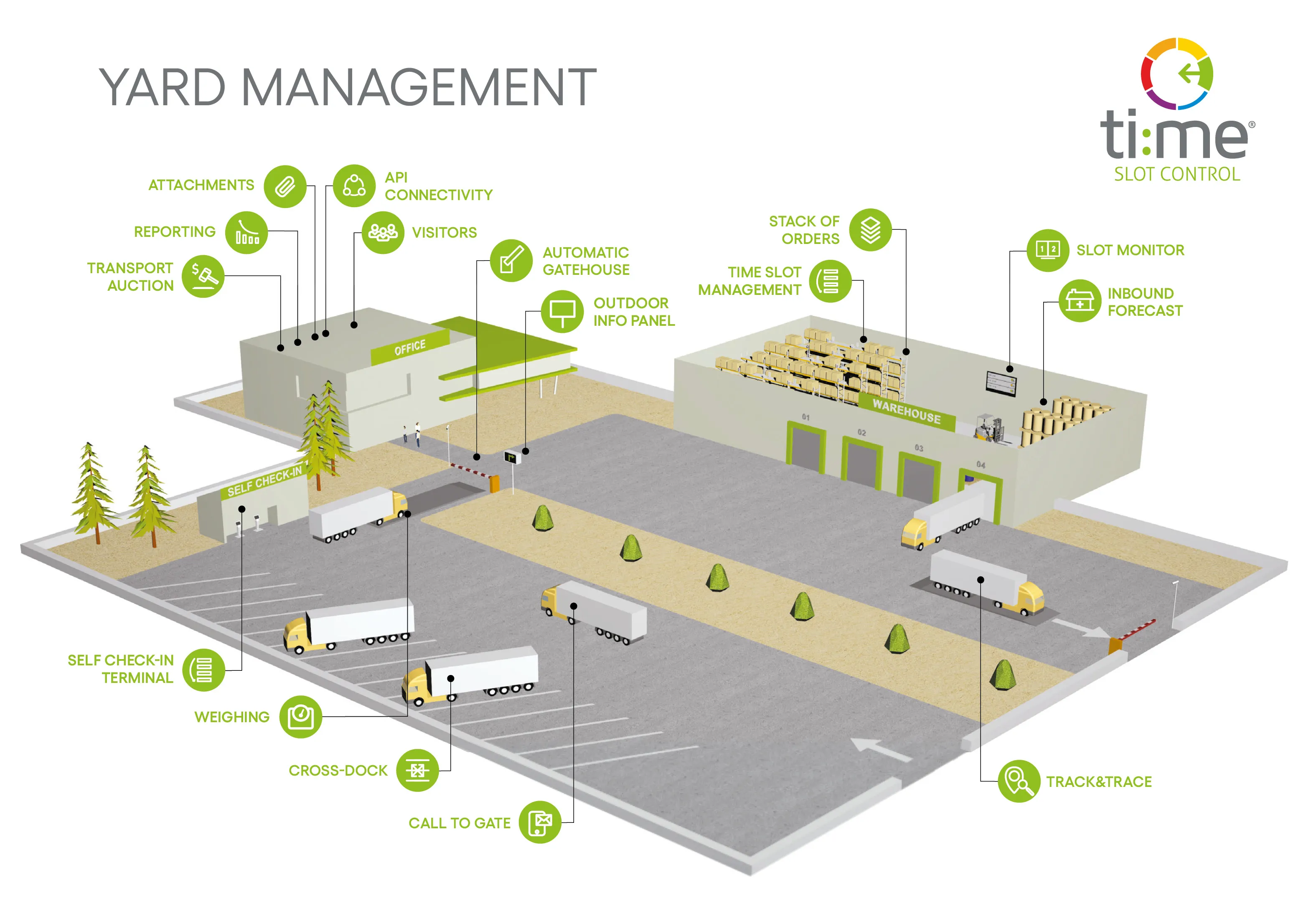Ukážeme vám, jak naše řešení pro řízení časových oken funguje v reálném provozu – na konkrétních scénářích z každodenní praxe logistického provozu. Uvidíte, jak lze: